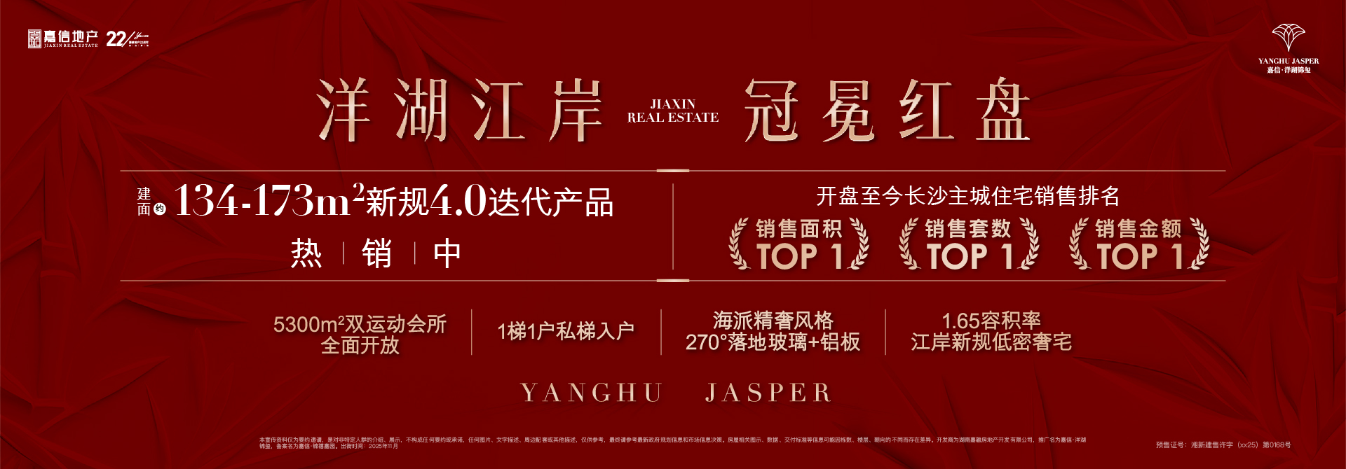 项目具备稀缺双景观资源,内部保留原生山体打造了一座约3000㎡的立体山水剧场,外部紧邻湘江风光带,拥有一线江景景观,约7.5万方精奢酒店度假风园林,超60米奢阔尺度门庭,于洋湖核心位置打造建面约117-129-135-139-169-172㎡新规4.0低密高奢作品,是高端改善客群首选。